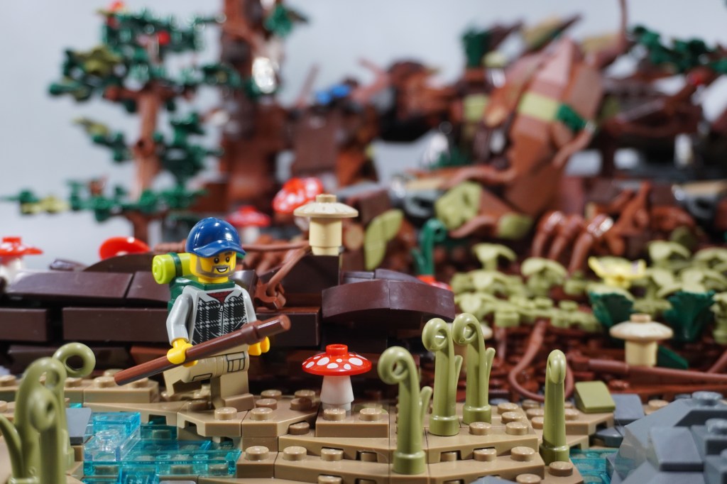 I used a lot of the flex brown pieces for the trees and Wald adding a bunch of detail. I had more mushrooms to add in for variety; squirrels, and birds populated as well; butterflies and other foliage filling out where felt appropriate.