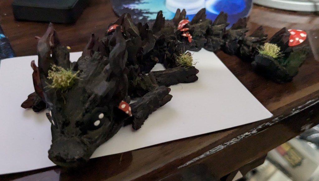 I went to the local renaissance fair with a friend group. Among the vendors this one dragon caught my eye. Amongst the sea of 3D printed dragons that every vendor was stocking, this dragon was as is. Painted and Weathered.