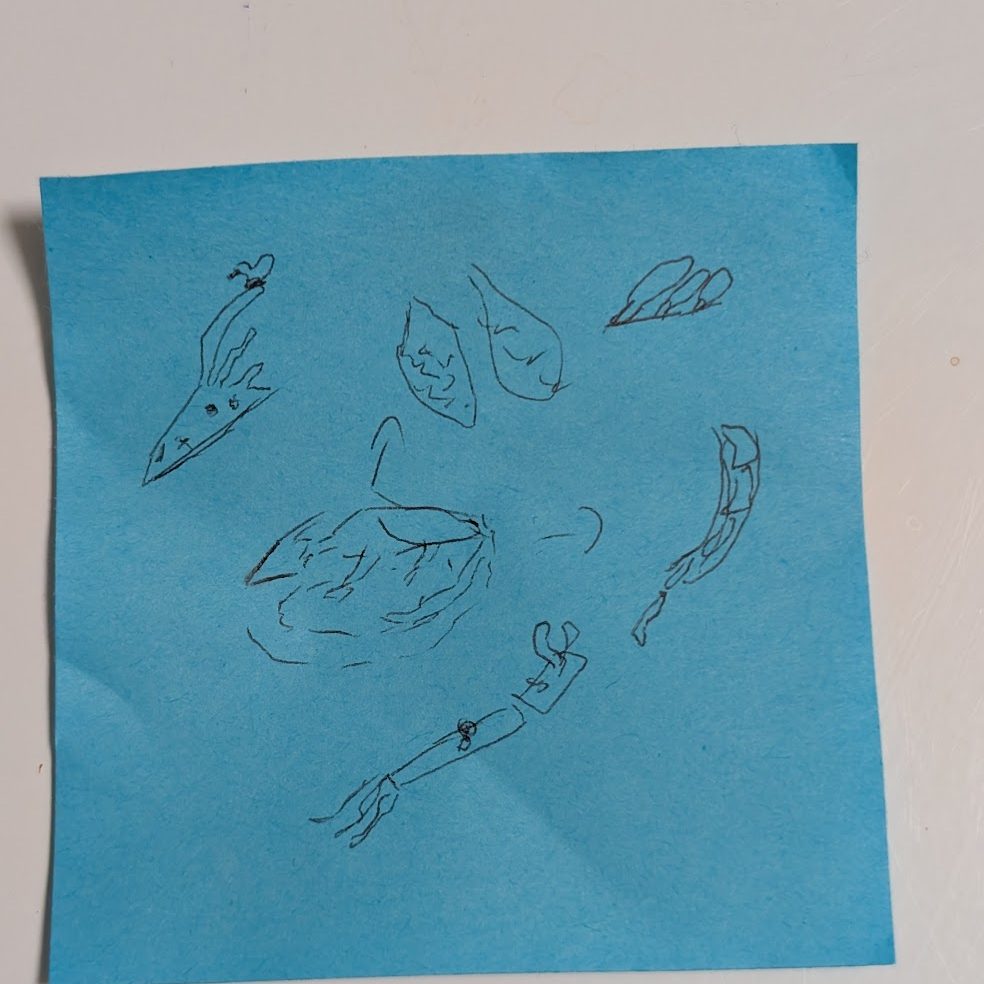 Soon enough I was daydreaming a bit and had to draw out what I wanted *MY* Dragon to be like. As with a lot of my ideas, the best sketchpad is the one at hand so a post-it note was my canvas.